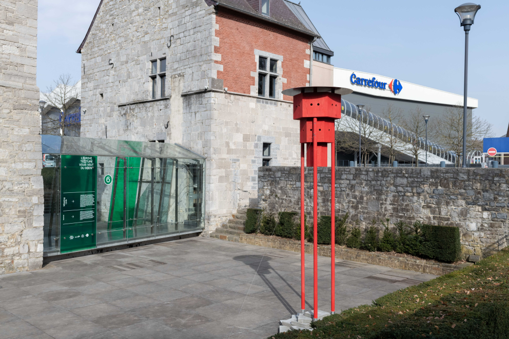 "Missing link porte l’attention sur le manque de sensibilité de notre environnement bâti. La situation urbaine de la Tour d’Anhaive à Jambes est un témoin saisissant de ce constat. Dans une volonté de tisser des liens entre tous les composants de notre milieu, nous proposons d’installer de manière permanente un abri pour volatiles comme rappel de l’importance du précieux et du fragile dans tout projet architectural."