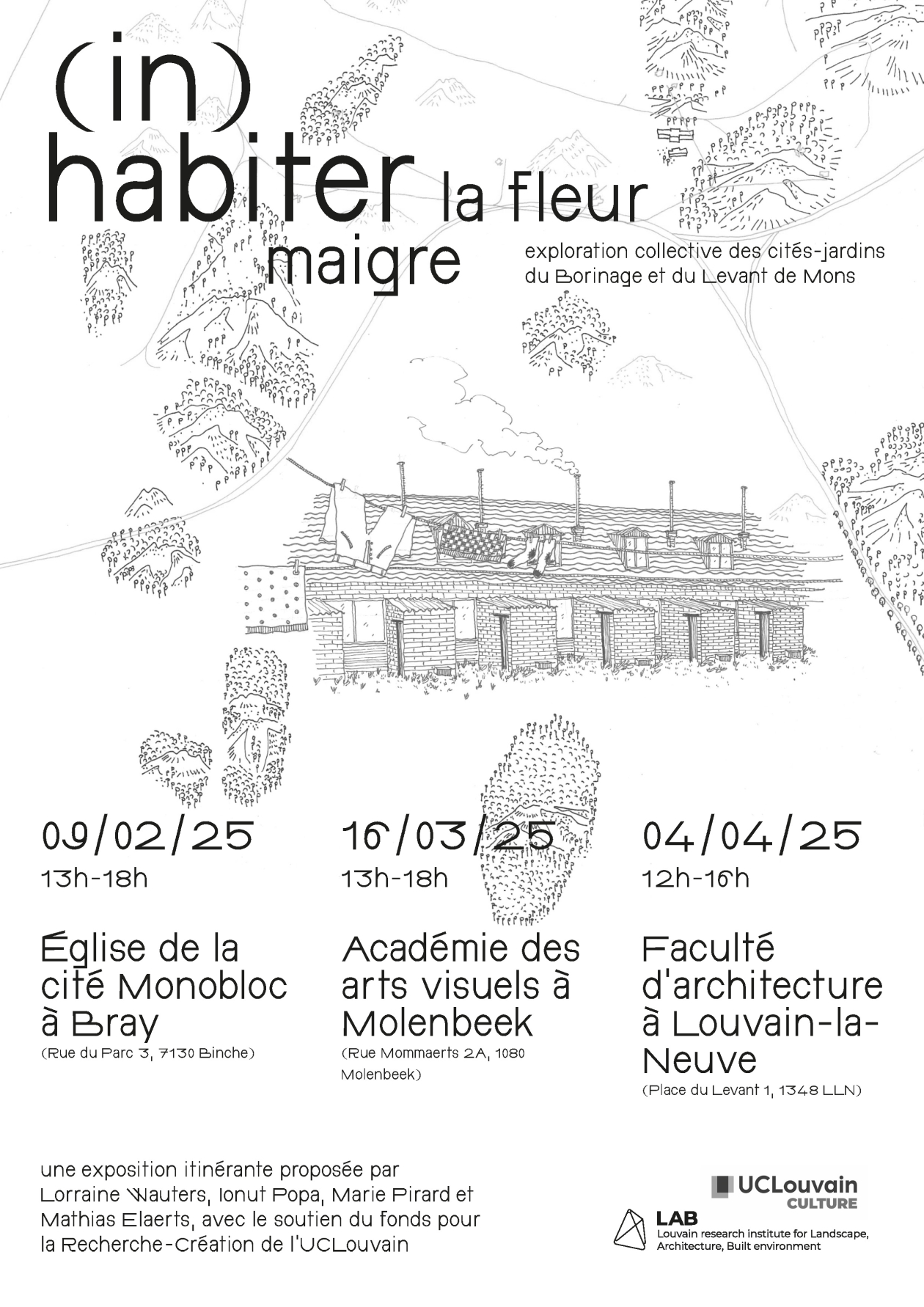 (In)habiter la fleur maigre est une exposition itinérante proposée par Lorraine Wauters, Ionut Popa, Marie Pirard et Mathias Elaerts, avec le soutien du fonds pour la Recherche-Création de l’UCLouvain.