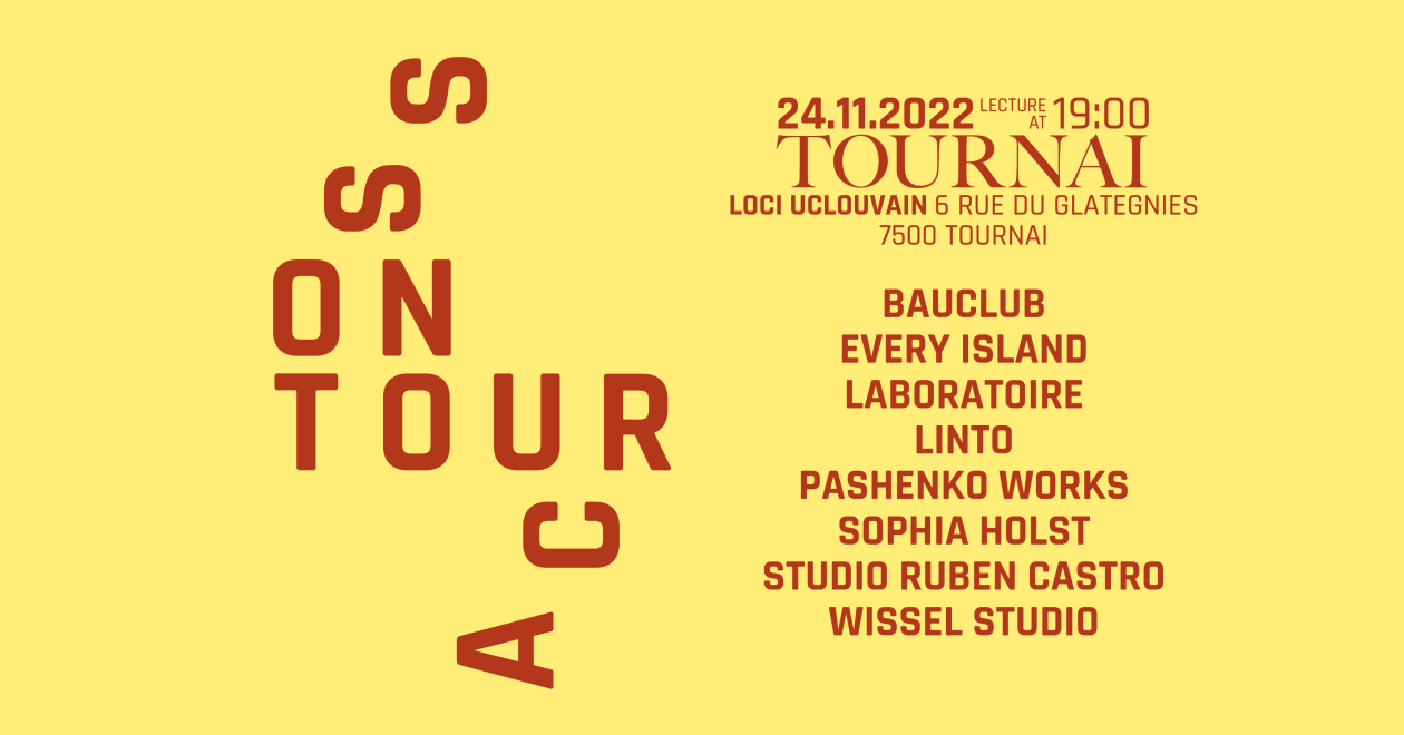 La première soirée se déroulera dans la Faculté d’Architecture de l’UCL à Tournai, le jeudi 24 novembre 2022. Lors de cette soirée, Every Island, Laboratoire, Linto Architecture, Bauclub, Sophia Holst, Studio Ruben Castro, Wissel Studio nous présenteront leur travail. Ils seront accompagnés par l’architecte tournaisienne Aurélie Hachez (AHA).