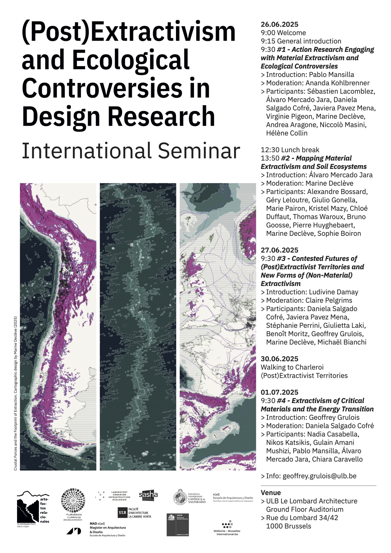 Les laboratoires LoUIsE et Sasha de l’ULB et l’Ecole d’Architecture et de Design de Valparaiso organisent le séminaire international (Post)Extractivism and Ecological Controversies in Design Research, du 26 juin au 1 juillet 2025.