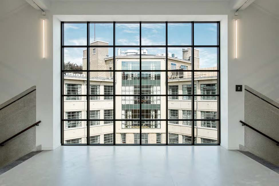 → La résidence ARC transforme le bâtiment moderniste emblématique de l’institut de mécanique de l'Université de Liège (arch. Joseph Moutschen et Albert Puters, 1939), en un espace résidentiel de coliving pour une population jeune. Artau Architectures a conservé le plan initial, constitué de quatre ailes, en évidant la partie centrale pour offrir une cour traversante partiellement arborée. Spatialement, le projet se fonde sur la valorisation de la structure en béton existante : des espaces privés compacts s’y logent, alors que les espaces mutualisés bénéficient de sa générosité.